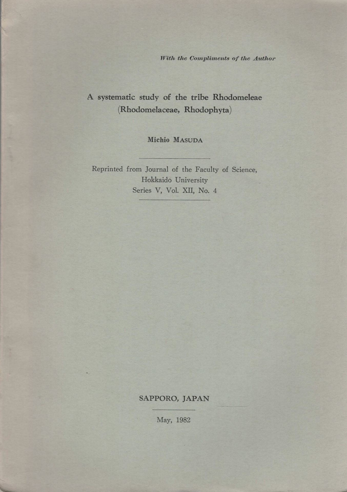 A systematic study of the tribe Rhodomeleae ( Rhodomelaceae, Rhodophyta). 1982. (Jl.Fac.Sc., Hokkaido Univ., Series V:12, part 4). 183 p. Paper bd.