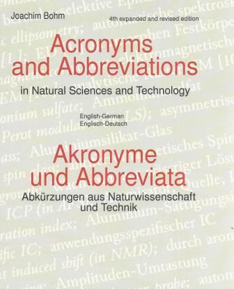 Acronyms and Abbreviations in Natural Science and Technology / Akronyme und Abrreviata - Abkürzungen aus Naturwissenschaft und Technik. 4th expanded and revised edition. 214. 5 tabs. 283 p. Paper bound.