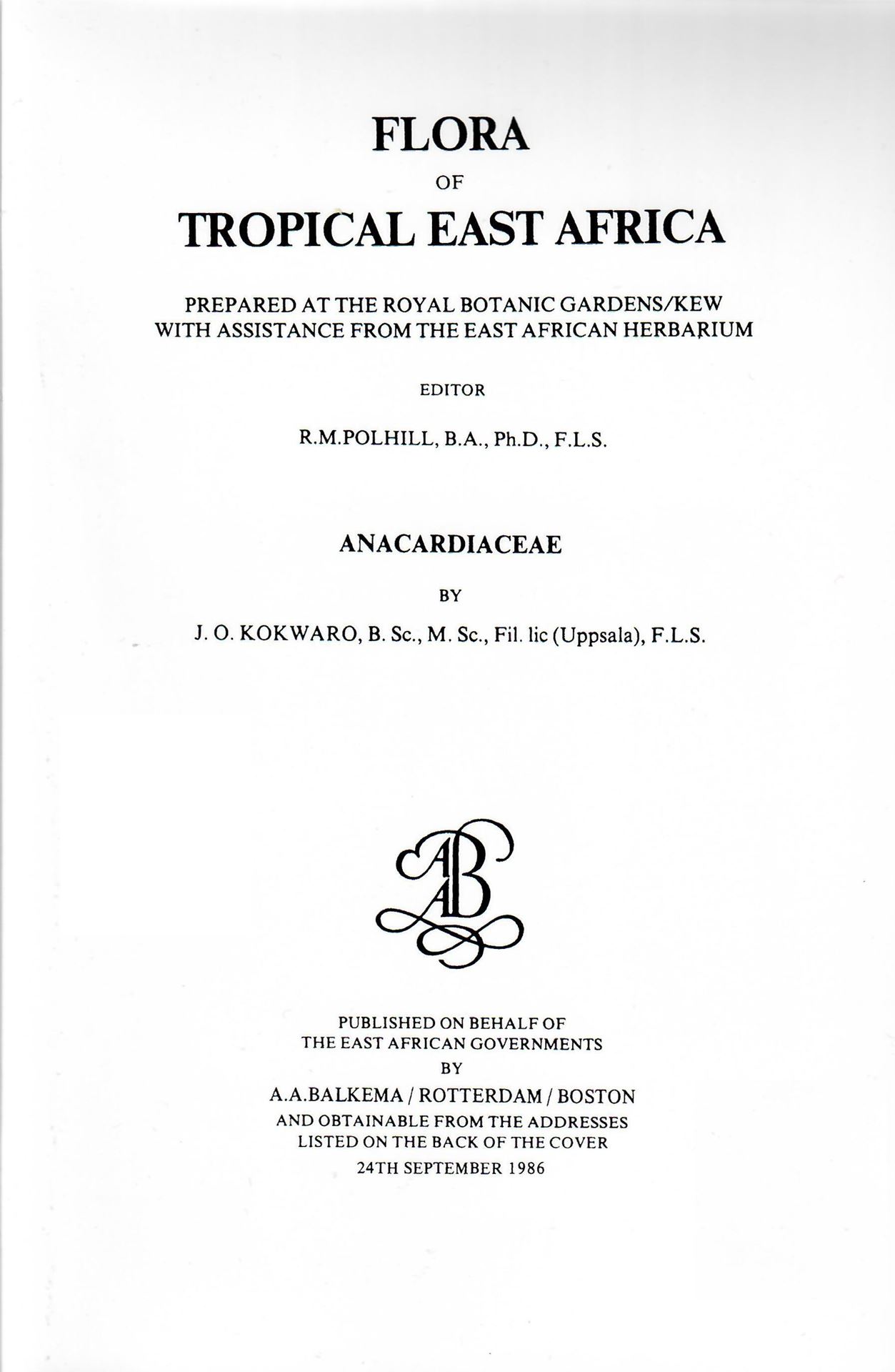 Flora of Tropical East Africa: Anacardiaceae by John Ongayo Kokwaro. 1986. illus. 59 p. gr8vo. Paper bd. (43322) 19.26