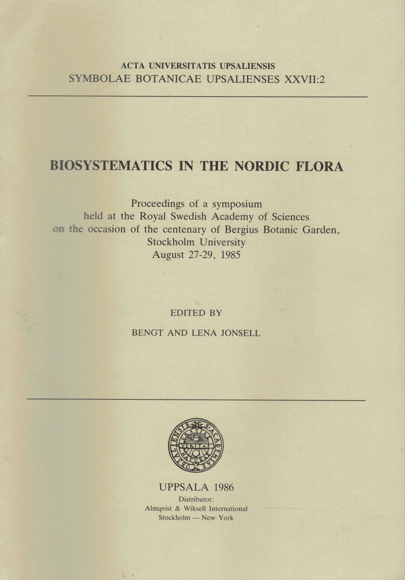 Biosystematics in the Nordic Flora. Proceedings of a symposium held at the Royal Swedish Academy of Sciences on the occasion of the centenary of Bergius Botanic Garden, Stockholm University, August 27-29, 1985. Publ. 1986. (Symbolae Bot. Upsalienses, XXVII:2). illustr. 256 p. gr8vo. Paper bd.