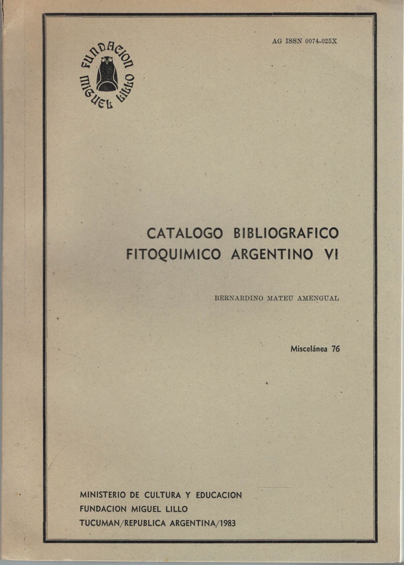 Amengual, Bernardino Mateu: Catalogo Bibliografico Fitoquimico Argentino VI:Mendiondo,Maria Elena,Berta E.Juarez,a.oth.:Segunda Contribucion a la Bibliografia Fitoquimica y Quimiosistematica de Flavonoides.1983. (Fundacion Miguel Lillo,Instituto Miguel Lillo,Miscellanea,Vol.76). 228 p.gr8vo.Paper bd.(18590) 27.82