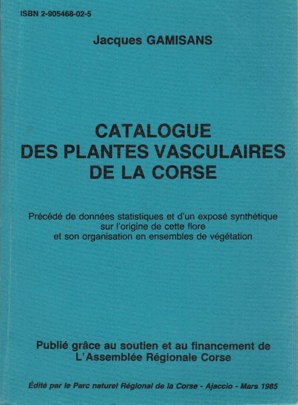 Catalogue des Plantes Vasculaires de la Corse. Précédé de données statistiques et d'un exposé synthétique sur l'origine de cette flore et son organisation en ensembles de végétation. 1985. 231 p. Paper bd,