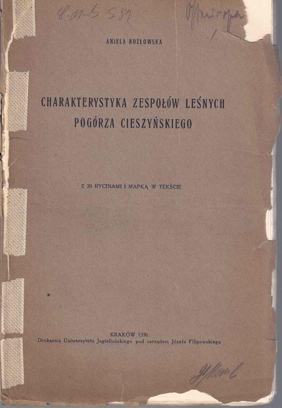 Charakterystika Zespolow Lesnych Pogorza Cieszynkiego (Characteristics of forest associations of Pogorze Cieszynski). 1936. 1 col. foldg. map. 78 p. gr8vo. Paper bd. -Bilingual (Polish / French).