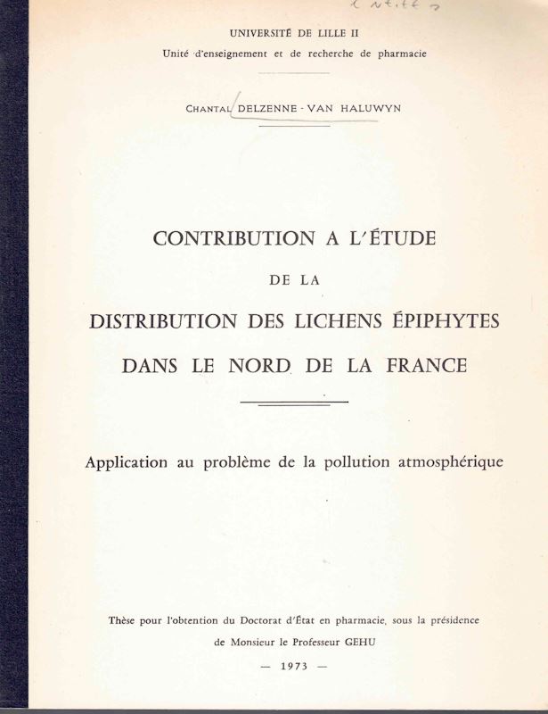 Contribution à l'Etude de la Distribution des Lichens Epiphytes dans le Nord de la France. Application au problème de la pollution athmosphérique. 1973. (Thèse, Lille). 162 p. 4to. Paper bd.