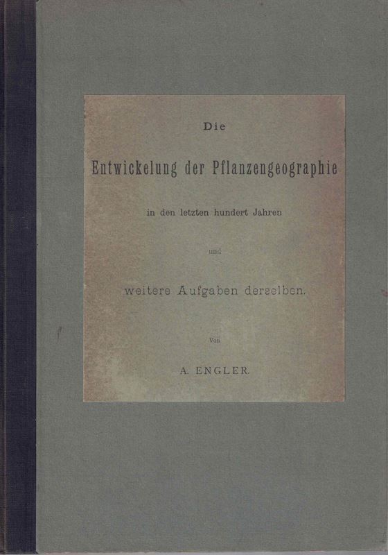 Die Entwicklung der Pflanzengeographie in den letzten hundert Jahre und weitere Aufgaben derselben. 1899. 247 S. 4to. Kartoniert.