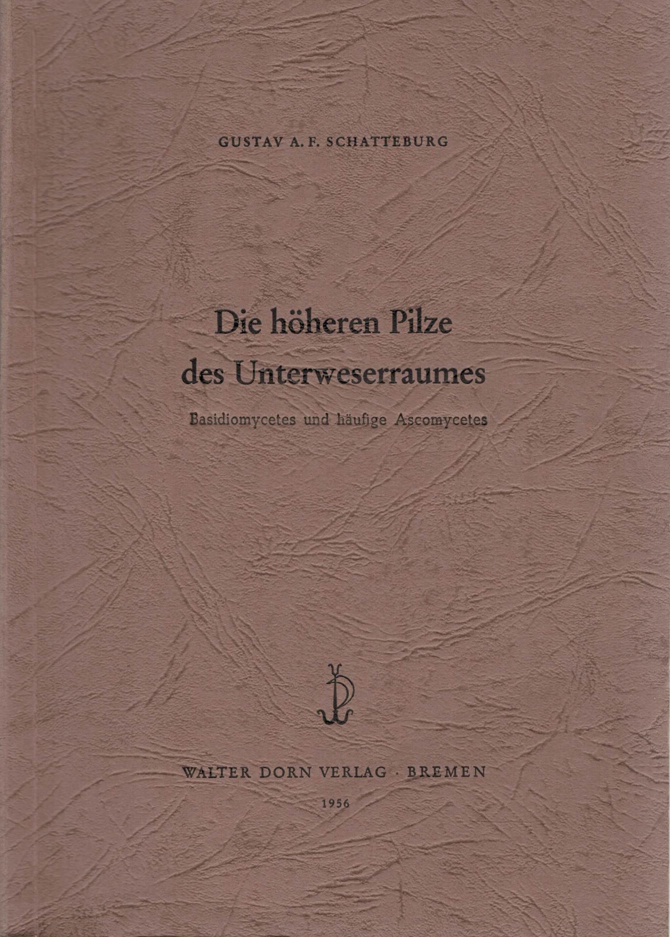 SCHATTEBURG, Gustav A.F.: Die hoeheren Pilze des Unterweserraumes. Basidiomycetes und haeufige Ascomycetes. Ein Fundkatalog der Jahre 1913- 1956. 1956. (Monographien der Wittheit zu Bremen,3). XV,441 S. gr8vo. Leinen. (8629) 32.00