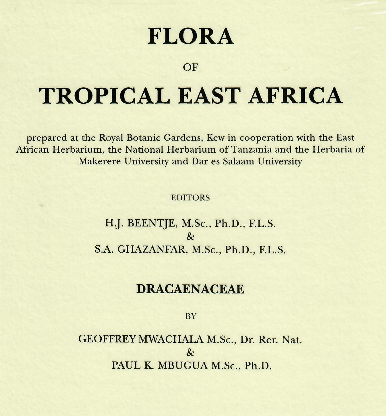 Flora of Tropical East Africa: Dracaenaceae by G. Mwachala and P. K. Mbugua. 2007. 5 figs. 44 p. gr8vo. Paper bd. (93624) 42.80