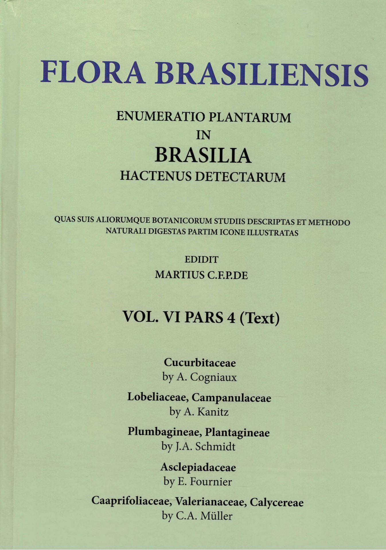 Contains: Cogniaux, A.: Cucurbitaceae/ Kanitz, A.: Lobeliaceae, Campanulaceae/ Schmidt, J.A.: Plumbaginaceae, Plantagineae/ Fournier, E.: Asclepiadaceae/ Müller, C.A.: Caprifoliaceae, Valerianaceae, Calycereae