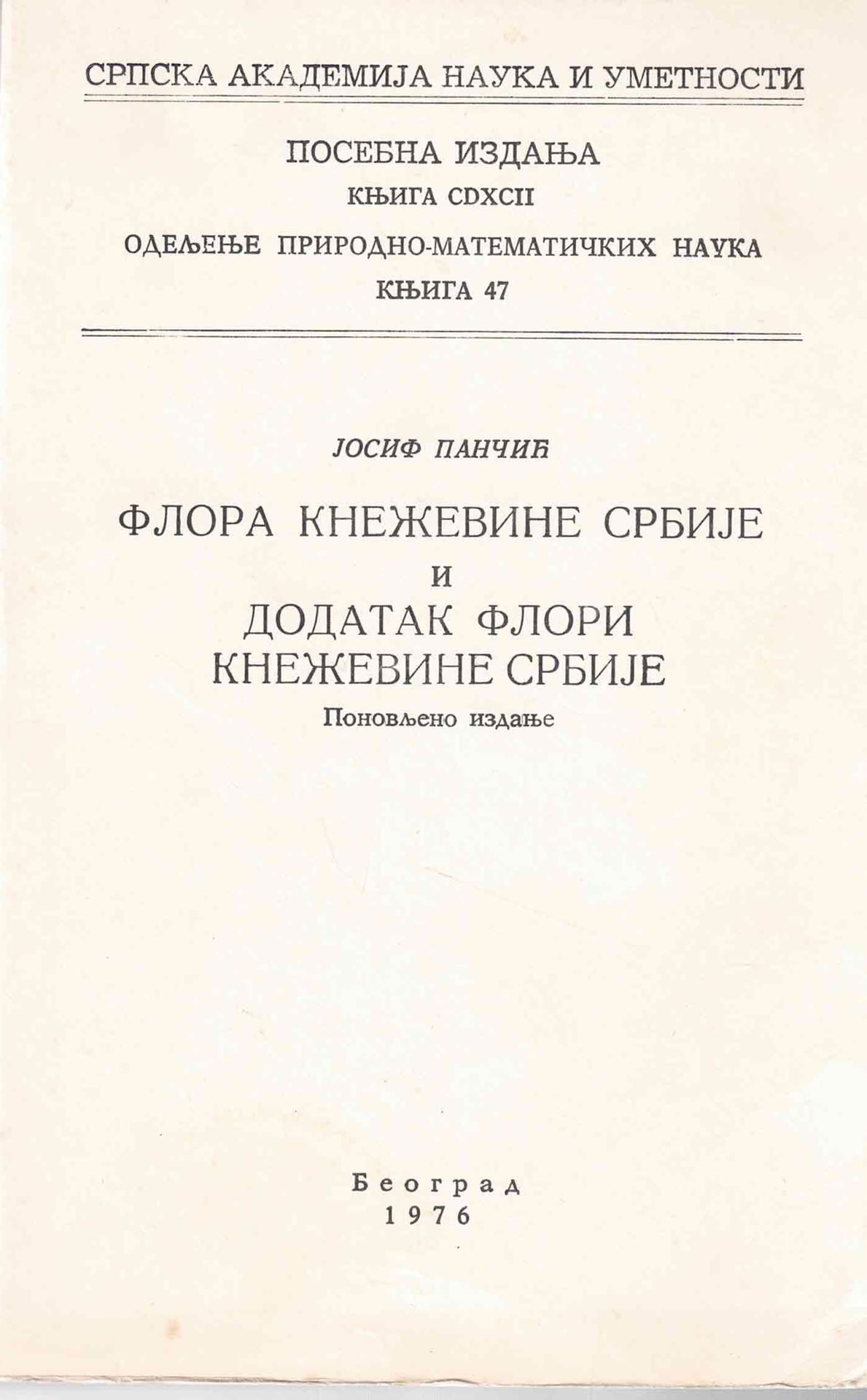 Flora Kenezine Srbije i Dodatak flori Knezevine Srbije (Flora of the Principality of Serbia and Supplement to the Flora of the Principality of Serbia). 1976. XXXIV, 798 & 253 &14 p. Hardcover. - In Serbian, with Latin nomenclature.
