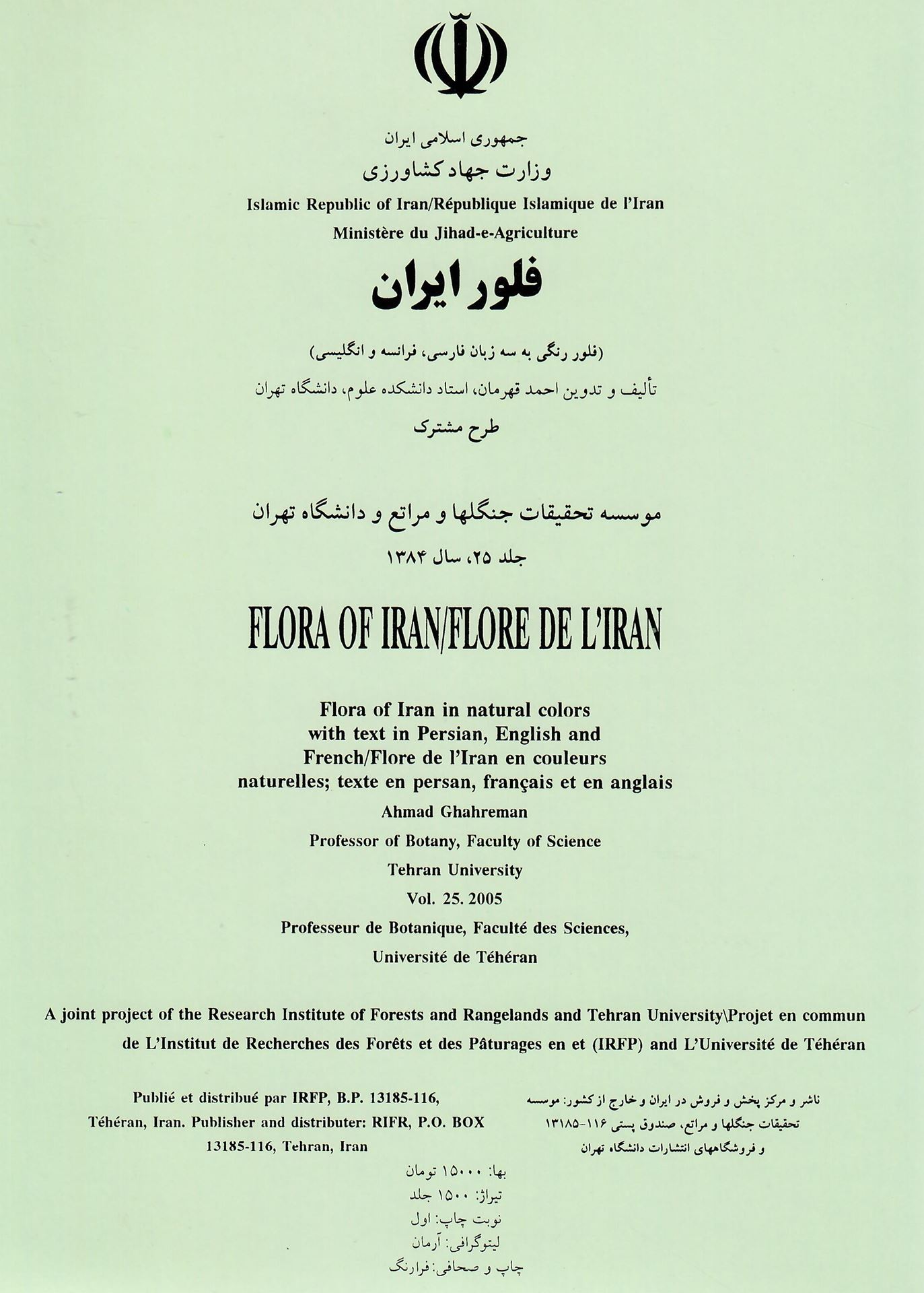 Flore de l'Iran en couleurs naturelles. Volume 025. 2005. 125 col. pls. with explanation. 4to. In Folder. - In Farsi, English and French.