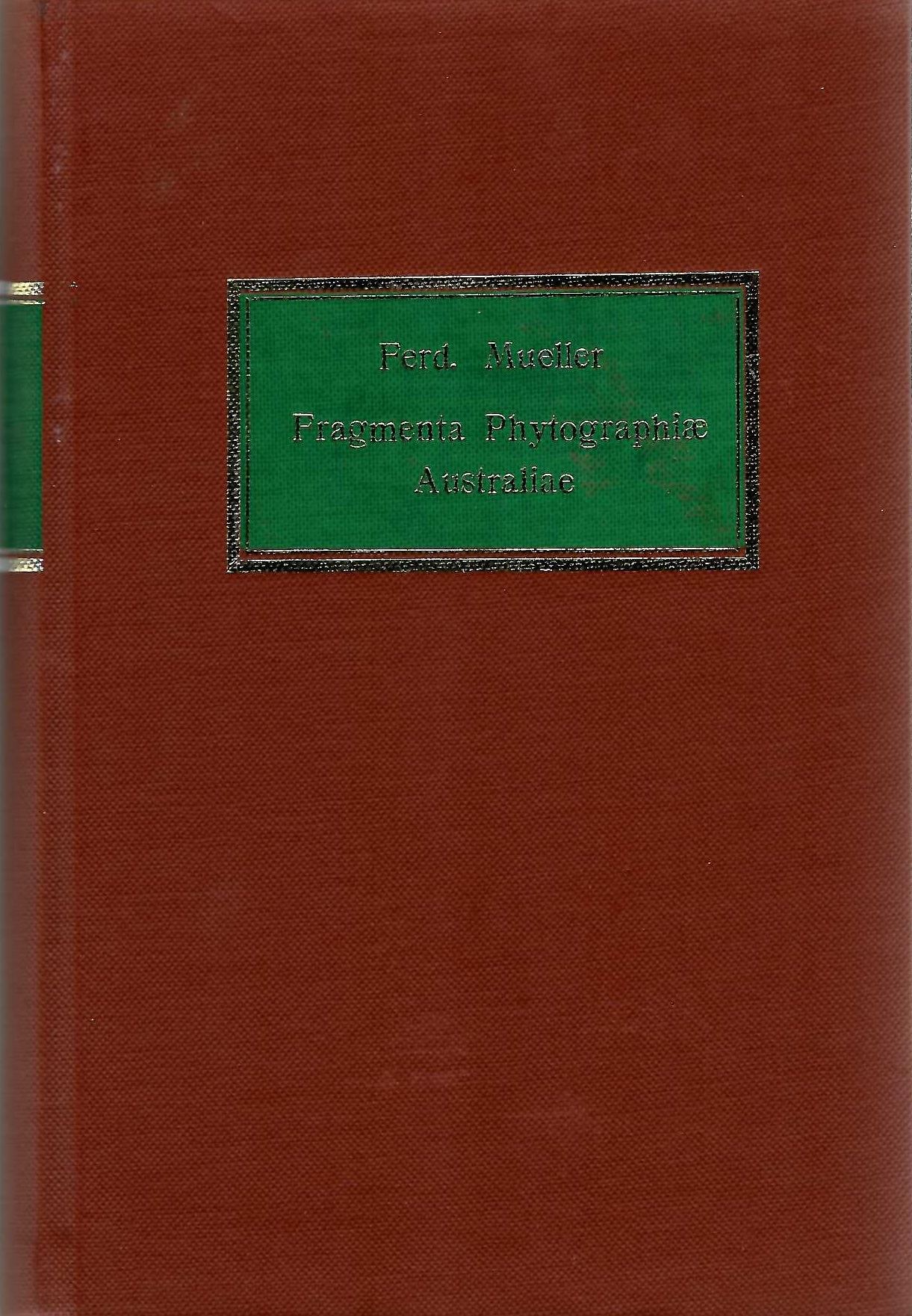 Mueller, Ferdinand von: Fragmenta Phytogeographiae Australiae. 3 vols.Melbourne 1858-1882. (Reprint 1974). 66 pls. 2532 p. Cloth. (Available).(7267) 191.53