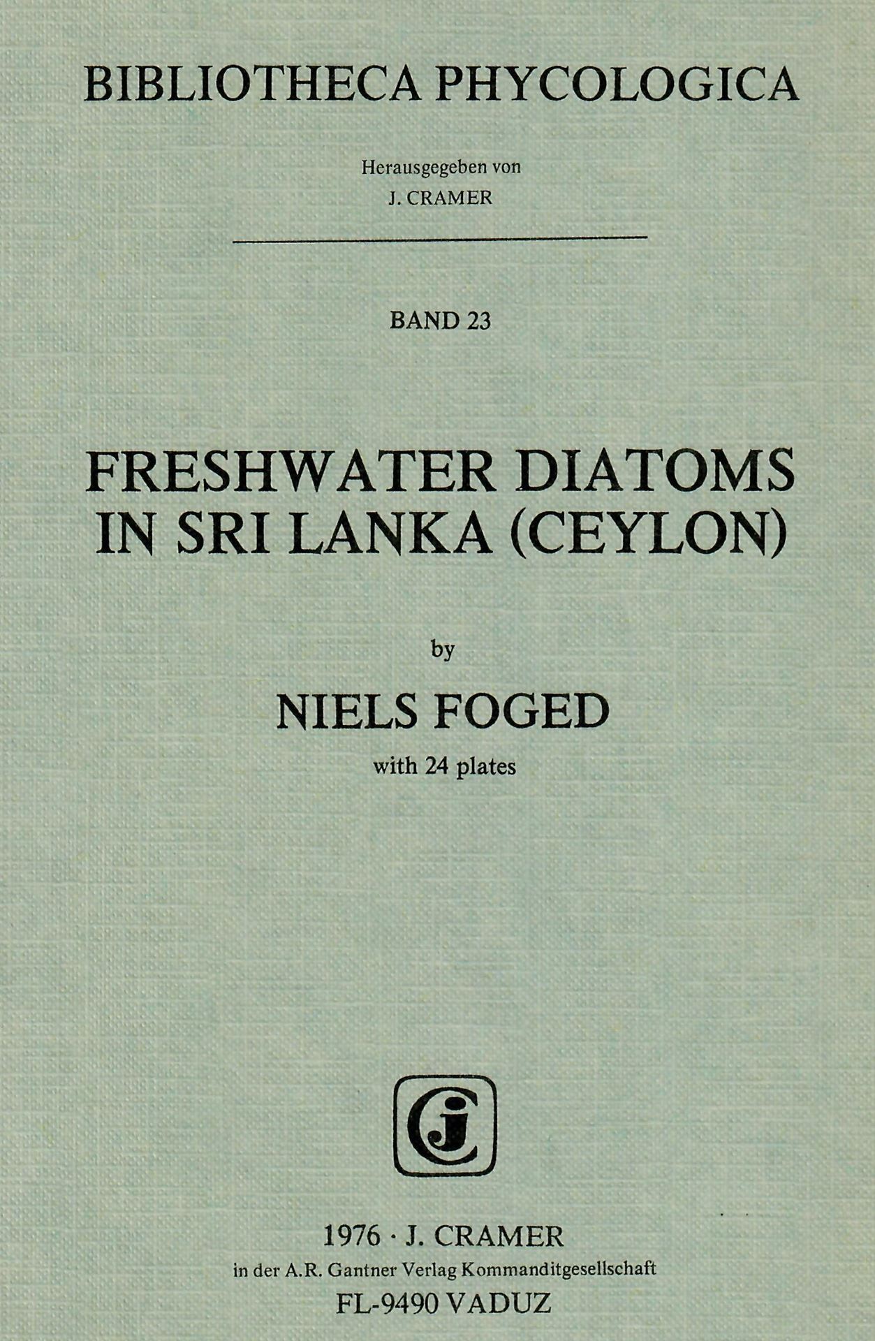 Foged, Niels: Freshwater Diatoms in Sri Lanka(Ceylon).1976.(Bibl.Phycol. Vol.23).24 plates.100 p.gr8vo.Paper bd.(18707) 26.00 (978-3-7682-1072-0).