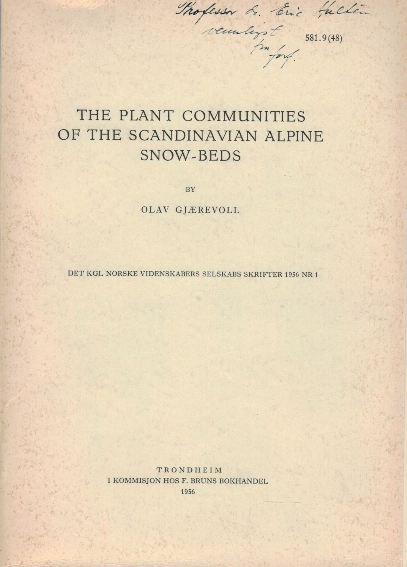 Gjaerevoll, Olav: The Plant Communities of Scandinavian Alpine Snow Beds 1956. (Kgl. Norske Vidensk. Selsk. Skr., 1956:1). 64 tabs. 80 figs. 405 p. gr8vo. Paper bd. (4635) 66.34
