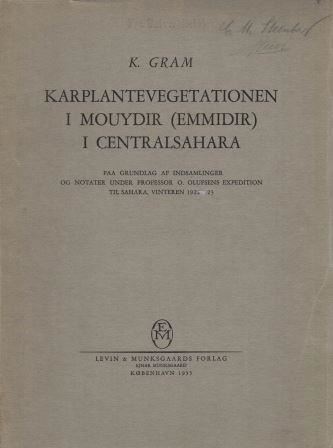 Gram, Kai: Karplantevegetationen i Mouydir (Emmidir) i Centralsahara paa Grundlag af Indsamlinger og Notater under Professor O. Olufsens Expedition til Sahara, Vinteren 1922 - 1923. Publ. 1935. illus. 168 p. gr8vo. Paper bd. (100558) 51.00