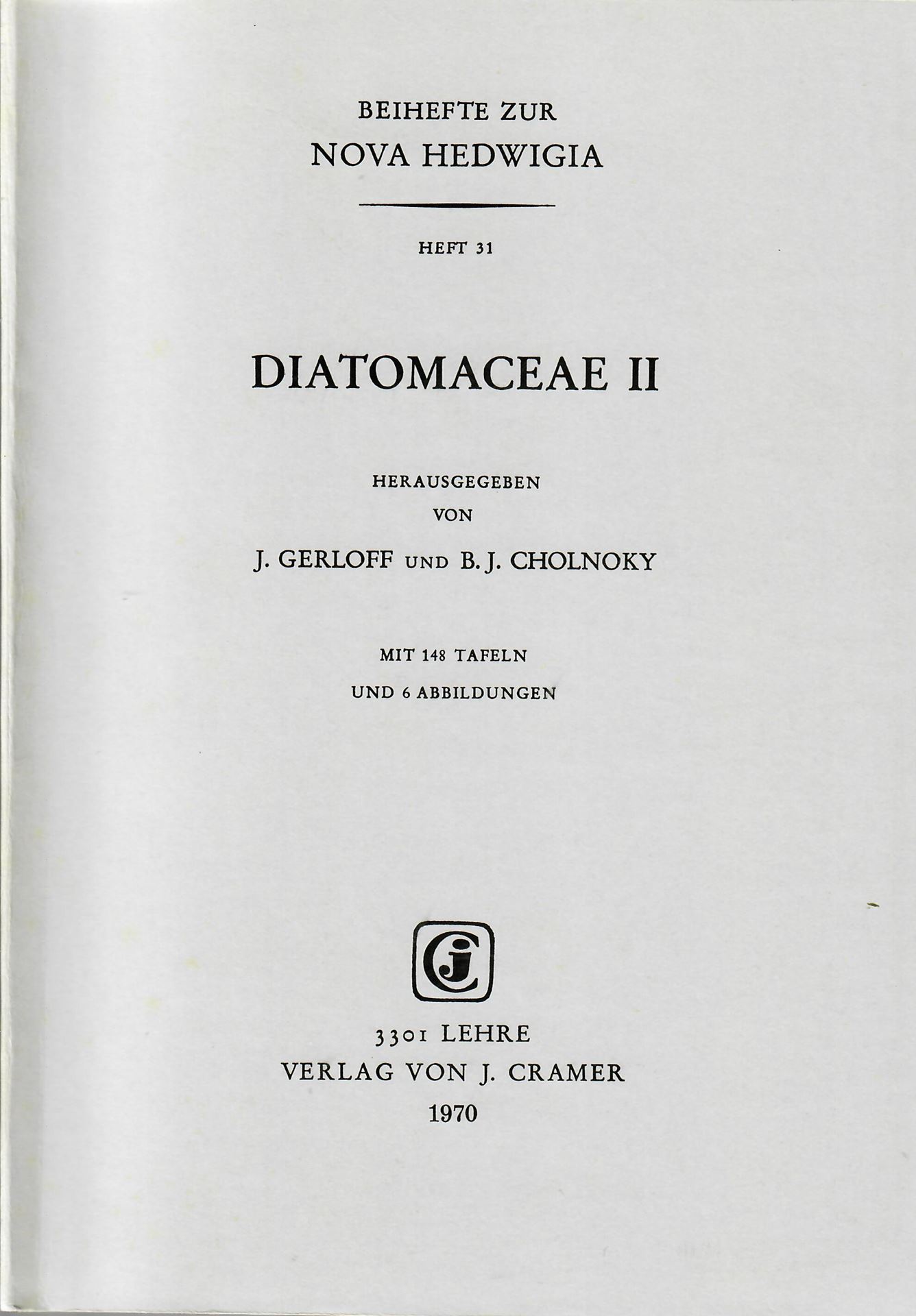 NOVA HEDWIGIA. BEIHEFTE: Heft 031: Gerloff, J. und B.J.Cholnoky: Diatomaceae II. Friedrich Hustedt Gedenkband. 1970. 149 Taf. 6 Fig. XXIV,836 S. (7419) 144.00 (ISBN 978-3-7682-5431-1)