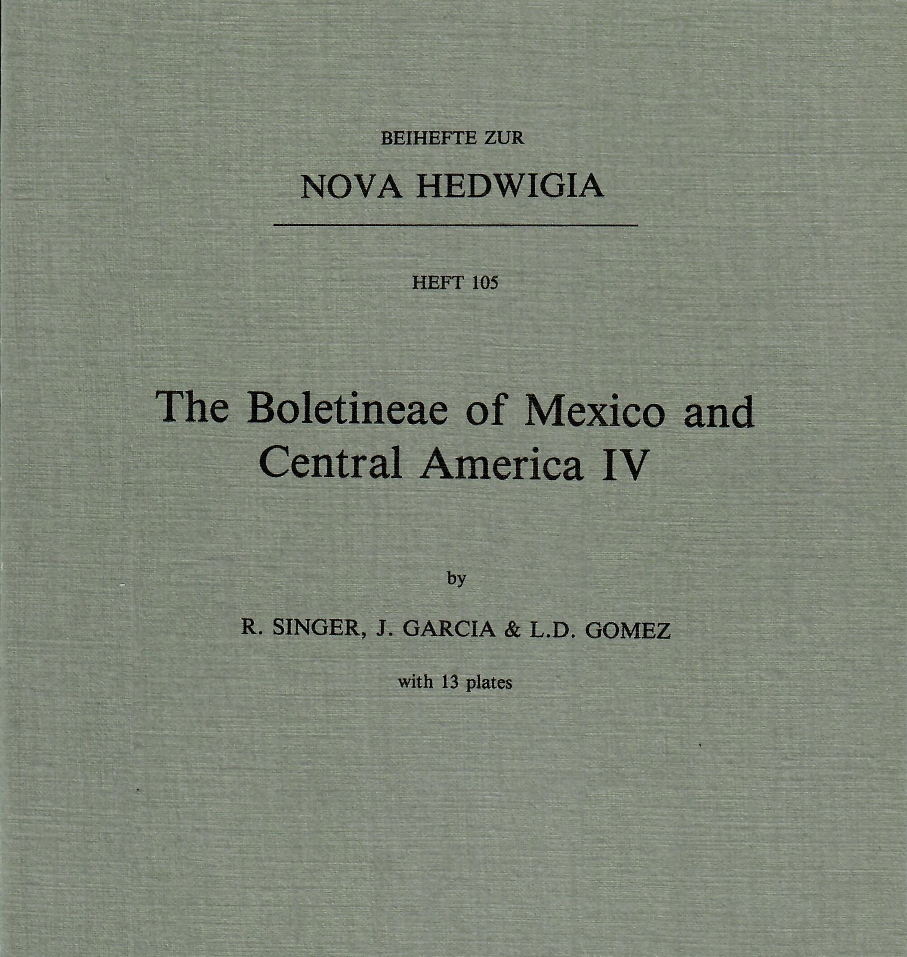NOVA HEDWIGIA. BEIHEFTE: Heft 105: Singer,R.,J.Garcia and L.D. Gomez: The Boletinae of Mexico and Central America,IV. 1992. VI,62 p.gr8vo. Paper bd.(48263) 36.00