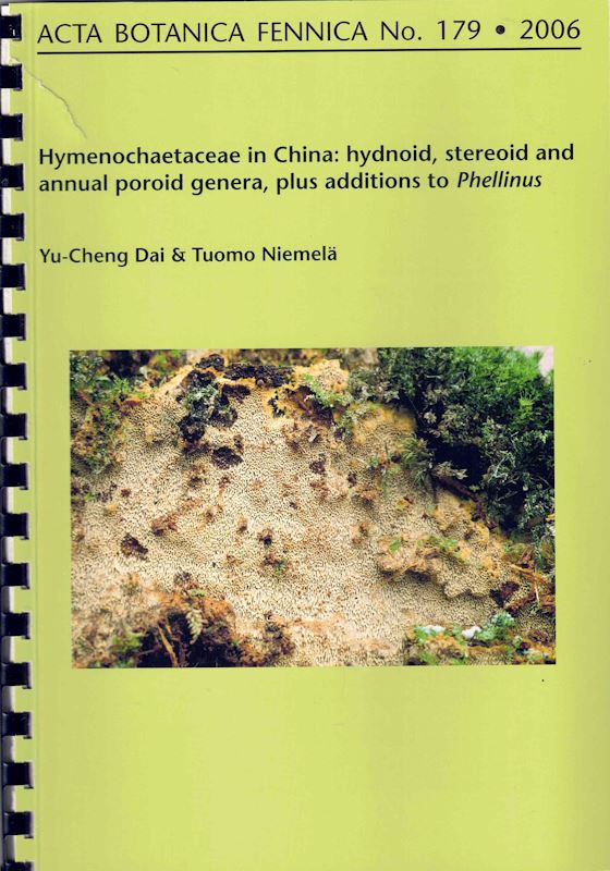 Hymenochaetaceae in China: hydnoid, stereoid and annual poroid genera, plus additions to Phellinus. 2006. (Acta Botanica Fennica, 179). 55 figs. 17 col. photogr. 78 p. 4to. Ringbinder.