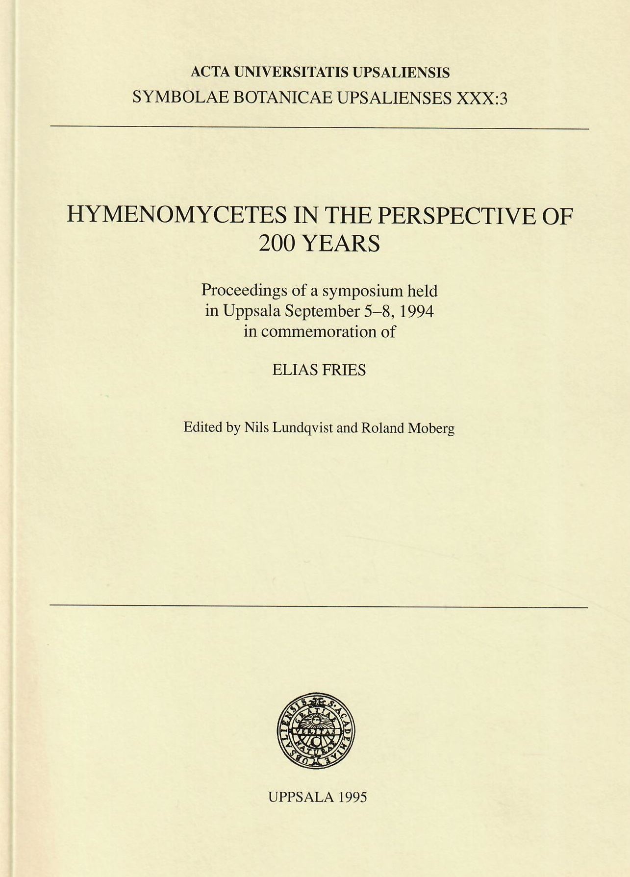 Hymenomycetes in the Perspective of 200 Years. Proceedings of a Symposium held in Uppsala September 5-8,1 994 in commemoration of ELIAS FRIES. 1995. (Acta Univ. Upsaliensis, Symbolae Bot. Upsalienses, XXX:3). illus. 212 p. gr8vo. Paper bd.