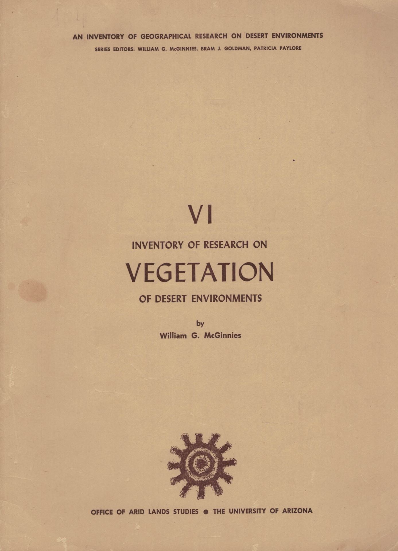 Inventory of Research on Vegetation of Desert Environments. 1967. (An Inventory of Geographical Research on Desert Environments, Chapter VI). 184 p. 4to. Paper bd.