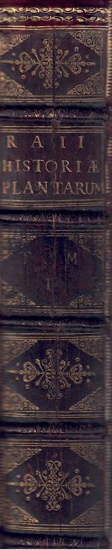 ... singulae accurate describuntur, obscura Illustrantur, omissa supplementur, suprflua resecantur, Synonyma necessaria adjiciuntur; Vires denique & Usus recepti compendio traduntur. Acces Serunt Lexicon Botanicum et Nomenclator Botanicus.Totum opus in duobus Tomis com Indicibus Necessariis Nominum, Morborum, & Remediorum. 3 volumes. London 1686 -1704. (Impensis Samuelis Smith & Benjamini Walford). XIL, 2999 p. Folio. Bound in leather, with rich gold tooling on spine.