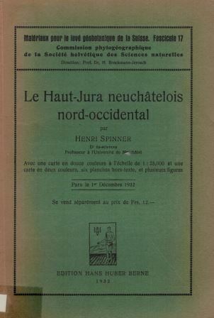 Spinner, Henri: Le Haut - Jura neuchatelois nord - occidental. 1932. 2 cartes. 6 pls. plusieurs fig. 197 p. gr8vo. Broche. 29.96 (90543)