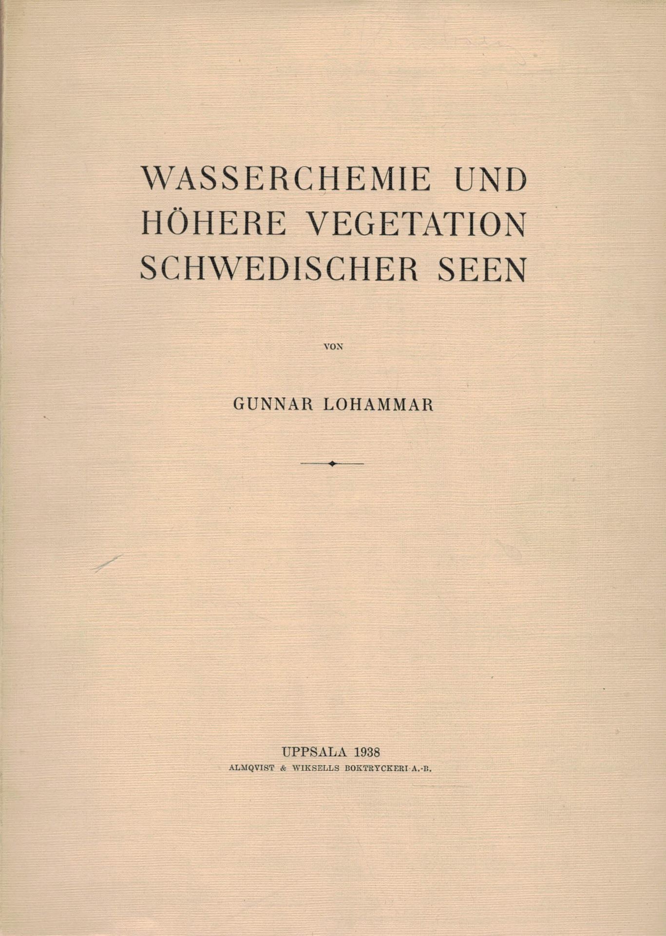 LOHAMMAR, Gunnar: Wasserchemie und hoehere Vegetation schwedischer Seen. 1938. (Symb.Bot.Upsalienses III:1). 75 Fig. 252 S. gr8vo. Ln. 38.52 (6584)