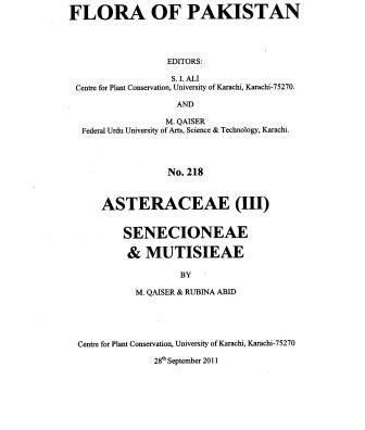 Flora of Pakistan: No. 218: Asteraceae III: Senecioneae & Mutisieae. 2011. 3 col. plates. 17 line - figs. 84 p. gr8vo. Paper bd. 39.59 (101358)