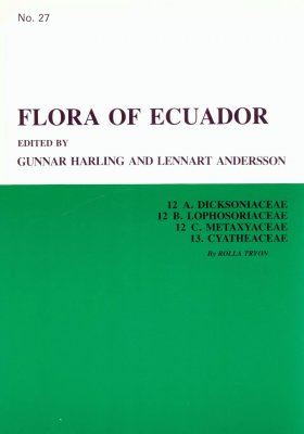 Flora of Ecuador: Part 027: Tryon, Rolla: 12A. Dicksoniaceae - 12B. Lophosoriaceae - 12C. Metaxyaceae - 13. Cyatheaceae. 1986. map on endpaper. 7 figs. 59 p. gr8vo. Paper bd. (26950) 16.05