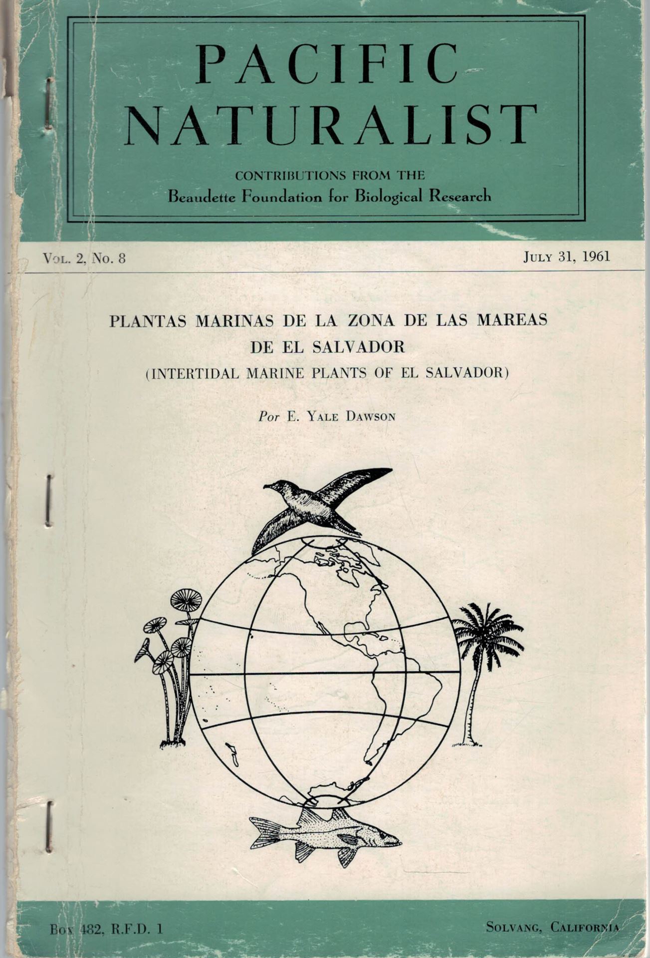Plantas marinas de la zona de las mareas de El Salvador. 1961. (Pacific Naturalist, 2:8). 37 pls. 72 p. Paper bd.
