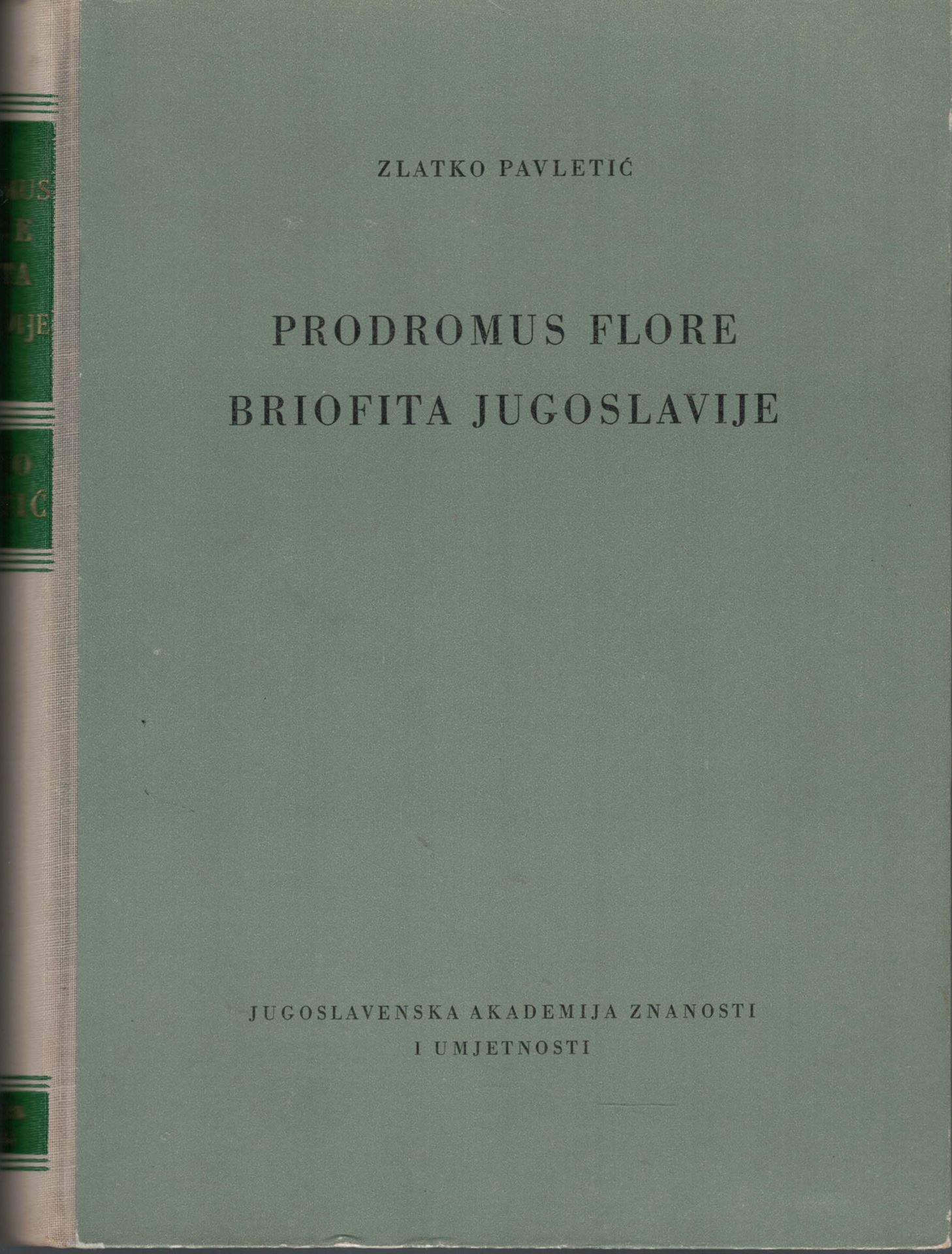 PAVLETIC, Zlatko: Prodromus Florae Briofite Jugoslavije. 1955. 575 p. gr8vo. Hardcover. - In Serbian. (7946) 66.34