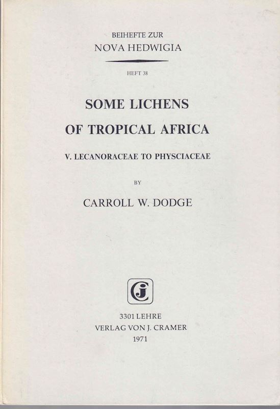 DODGE, Carroll W.: Some Lichens of Tropical Africa, 5: Lecanoraceae toPhysciaceae. 1971. (Nova Hedwigia, Beih. 38). II,226 p. gr8vo. Paperbound. - Second hand copy. (19703) 38.52