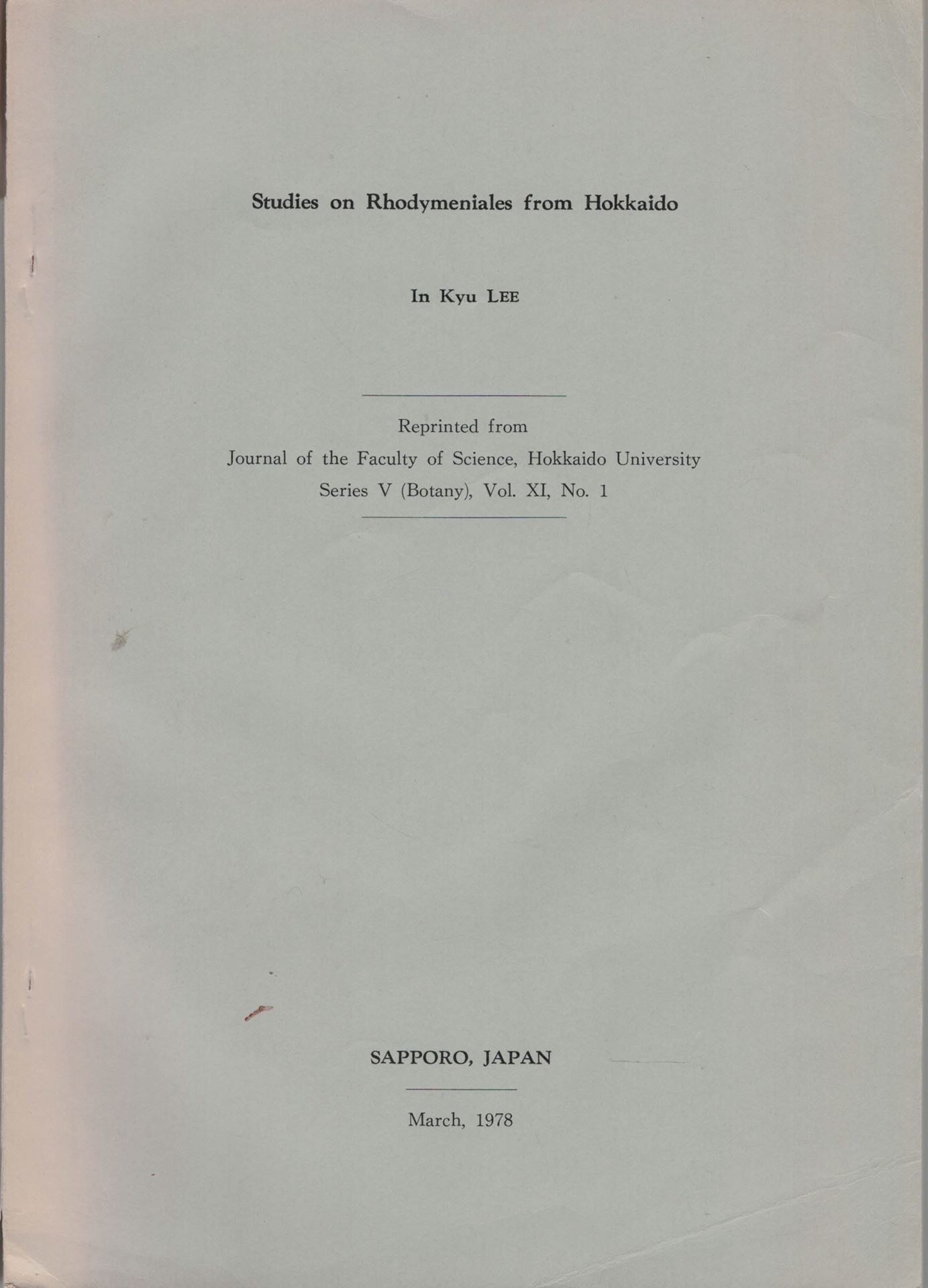 Lee, In Kyu: Studies on Rhodymeniales from Hokkaido. 1978. (Jl.Fac. Sc.Hokkaido Univ., Series 5, Vol. 11:1). 5 pls. 194 p. gr8vo. Paper bd.-Second hand copy. (84064) 44.94