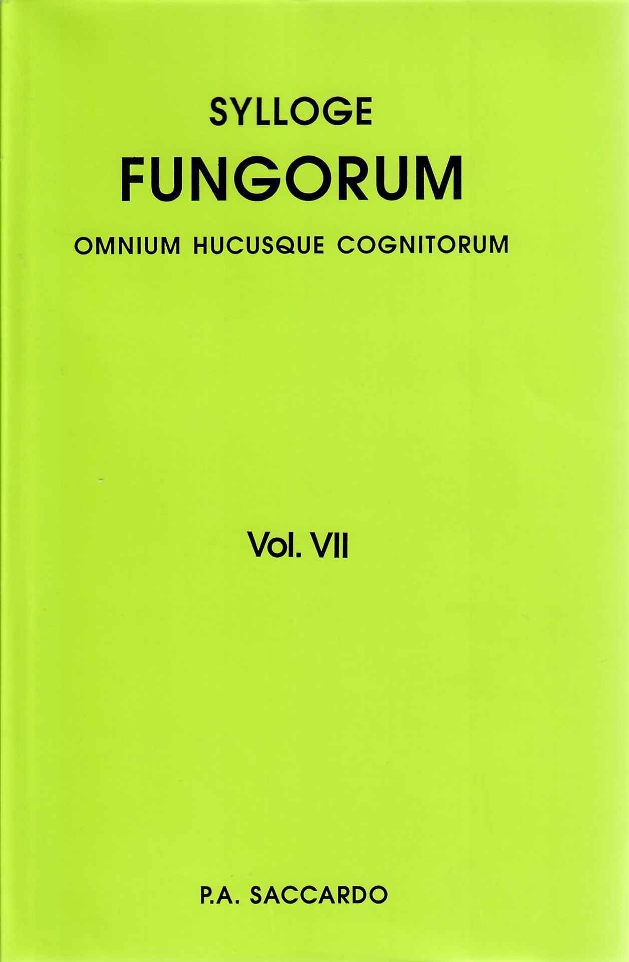 SACCARDO, P.A.: Sylloge Fungorum omnium hucusque congitorum. Vol. 7:1: Gasteromyceteae, Phylloideae/ J.B. de Toni: Nidulariaceae, Lycopodaceae et Hymenogastraceae/ A.N.Berlese et J.B. de Toni: Phycomyceteae/ A.N. Berlese: Myxomyceteae. (Patavii 1888). 498,XXX p. Vol. 7:2: J.B. de Toni: Ustilagineae et Uredineae. (Patavii 1888). 434,XXIX p. Reprint 2009. gr8vo. Hardcover. (8593) 203.30