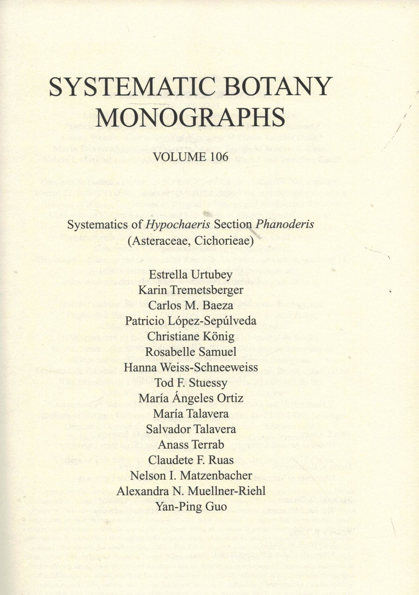 Urtebey, Estrella, Karin Tremetsberger, Carlos Baeza, Patricio Lopez - Sepulveda, Christane König, Rosabelle Samuel, Hanna Weiss - Schneeweiss, Tod F. Stuessy, a. oth.