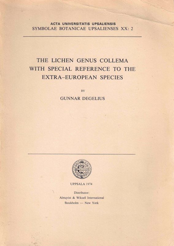 The lichen genus Collema with special reference to the extra-European species. 1974. (Symb.Bot.Upsalienses, XX:2). 65 figs. 215 p. Lex8vo.