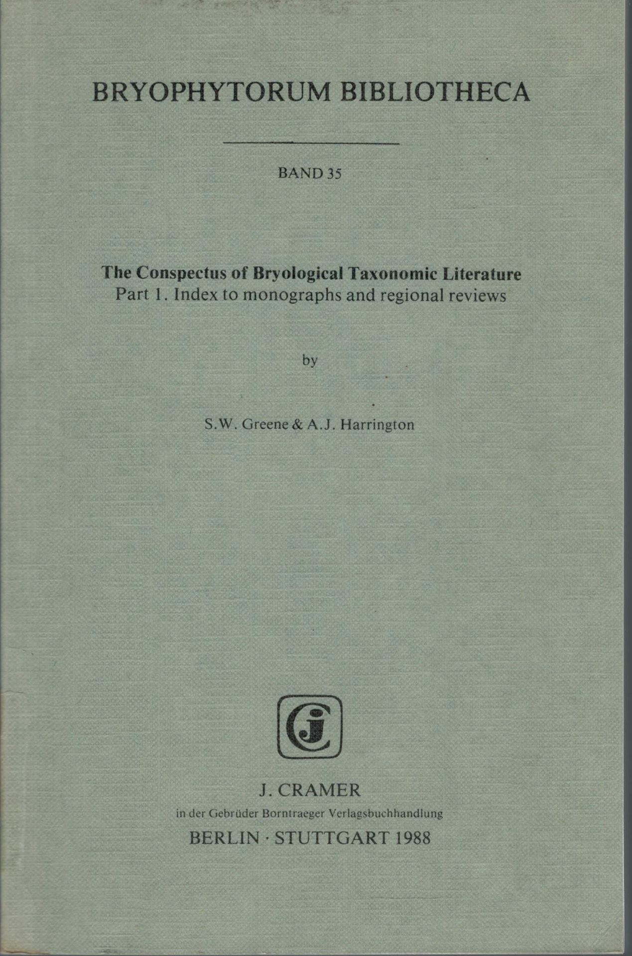 Volume 035: Greene,S.W. and A.J.Harrington:The Conspectus of Bryological Taxonomic Literature. Part 1: Index to Monographs and Regional Reviews. 1988. 272 p. gr8vo. Paper bd.