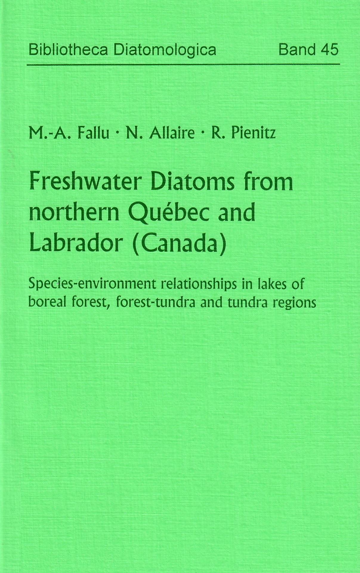 Bibliotheca Diatomologica: Volume 045: Fallu, M. -A., N. Allaire, R. Pienitz: Freshwater Diatoms from northern Québec and Labrador (Canada). Species - environment relationships in lakes of boreal forest, forest - tundra and tundra regions. 2000. 668 photogr. figures on 20 plates. VI, 200 p. gr8vo. Paper bd. (78332) 67.00