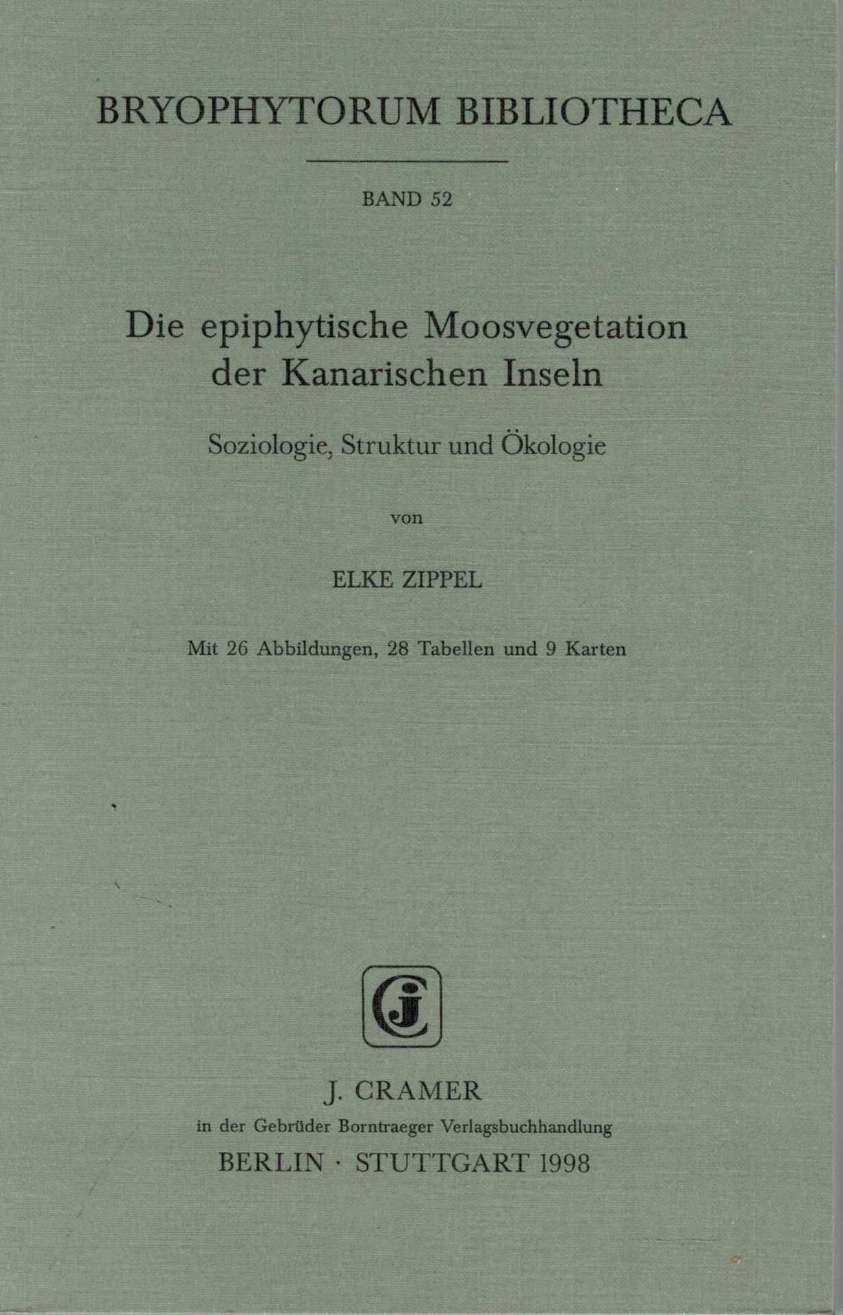 Volume 052: Zippel, Elke: Die epiphytische Moosvegetation der Kanarischen Inseln. Soziologie, Struktur und Ökologie. illus. 149 S. gr8vo. Broschiert.