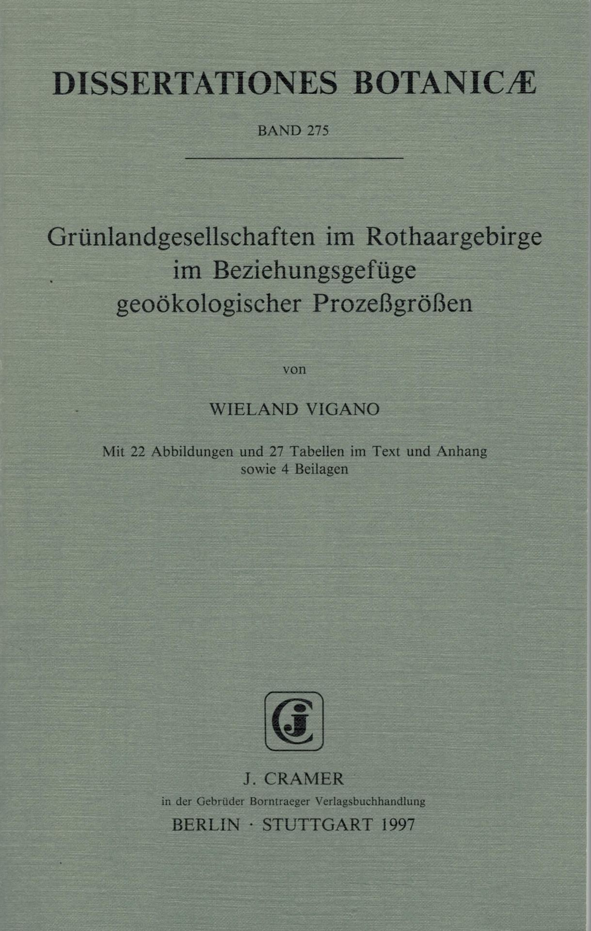 Volume 275: Vigano, Wieland: Grünlandgesellschaften im Rothaargebirge im Beziehungsgefüge geoökologischer Prozeßgrößen.1997. 22 Fig. 27 Tab. 212 S.gr8vo.Broschiert.
