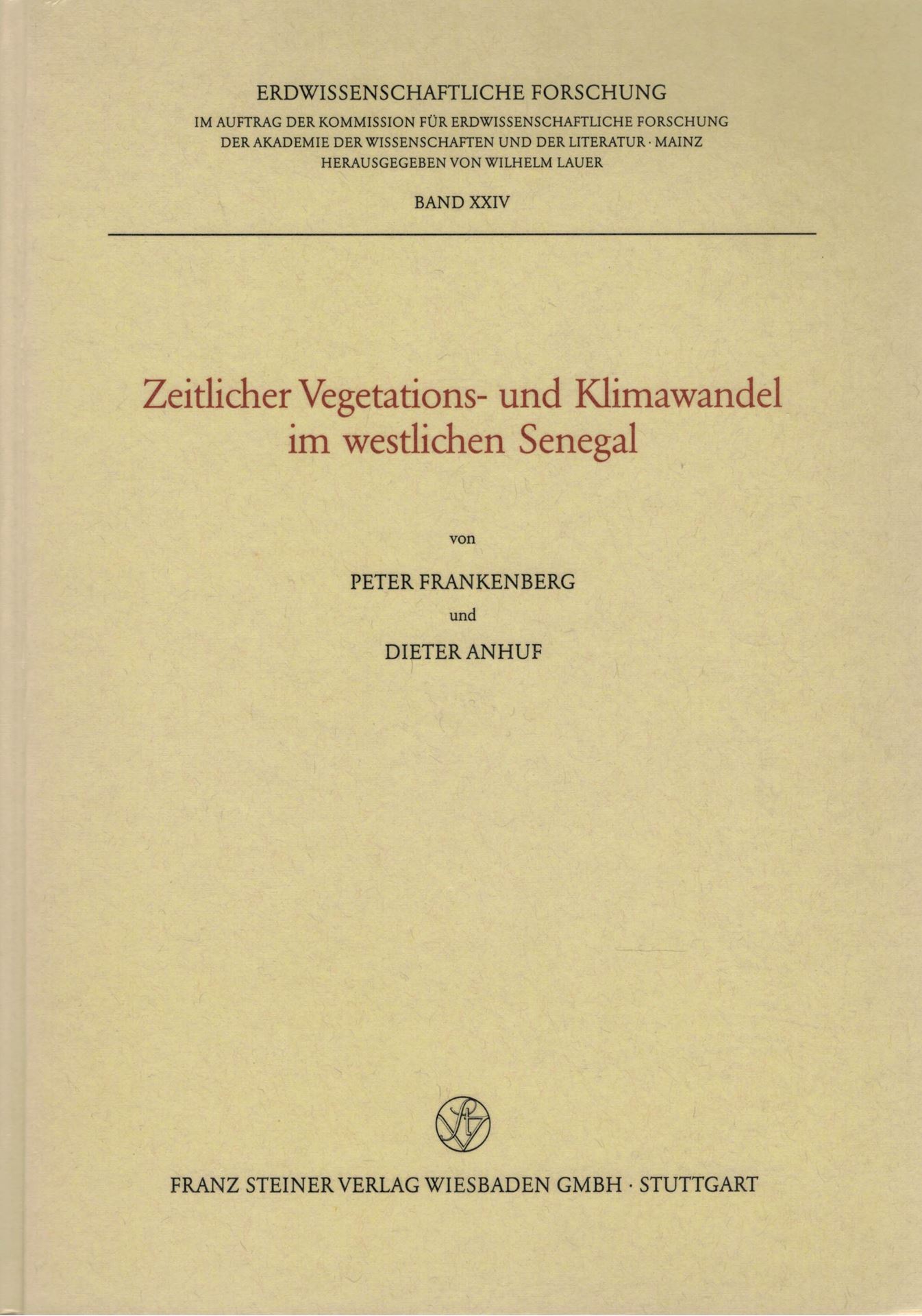 Zeitlicher Vegetations- und Klimawandel im westlichen Senegal. 1989. (Erdwissesnchaftliche Forschung, 24). 125 Fif. 4 Tab. 6 Falttafeln. 215 S. 4to. Hardcover.