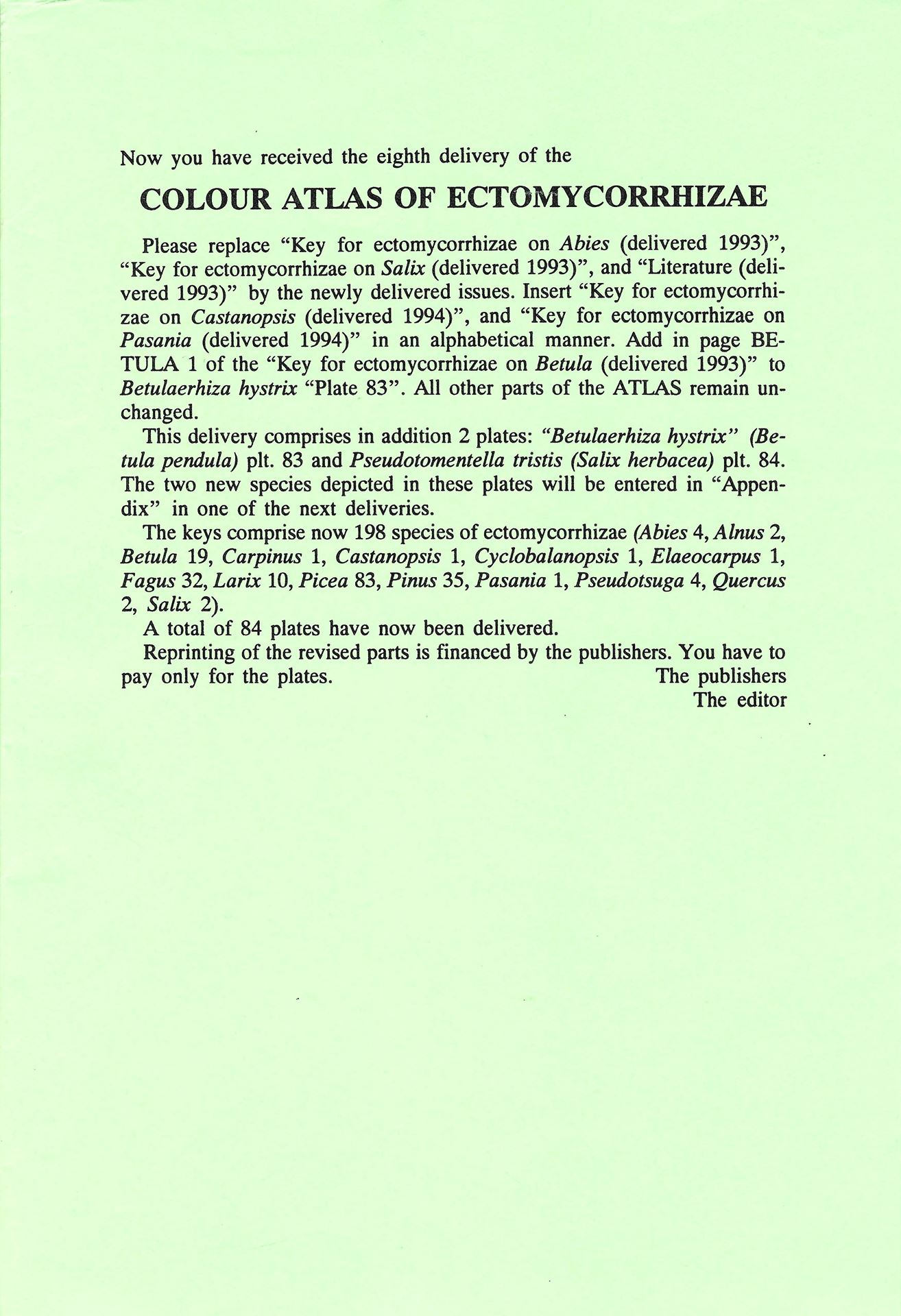 Colour Atlas of Ectomycorrhizae. No. 08. 1994. 2 col. pls. 2 black & white pls. 24 p. gr8vo. Loose-leaf system.