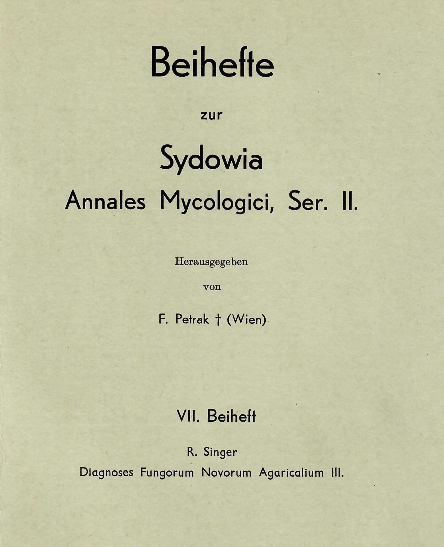 SINGER, Rolf: Diagnoses Fungorum Novorum Agaricalium. Part 3. 1973. (Beih. Sydowia, Ser. II:7). 106 p. In Latin.(9107) 55.64