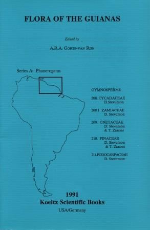 Flora of the Guianas: Executive Editor: A.R.A.Goerts-van-Rijn. Series A: Phanerogams. Fascicle 009: Gymnosperms: Cycadaceae, by D.Stevenson, Zamiaceae,by D.Stevenson, Gnetaceae, by D.Stevenson and T.Zanoni, Pinaceae,by D.Stevenson and T.Zanoni, Podocarpaceae, by D.Stevenson. 1991.Illustrated. 40 p.gr8vo.Paper bd. (45639) 11.00 (ISBN 978-3-87429-326-6)