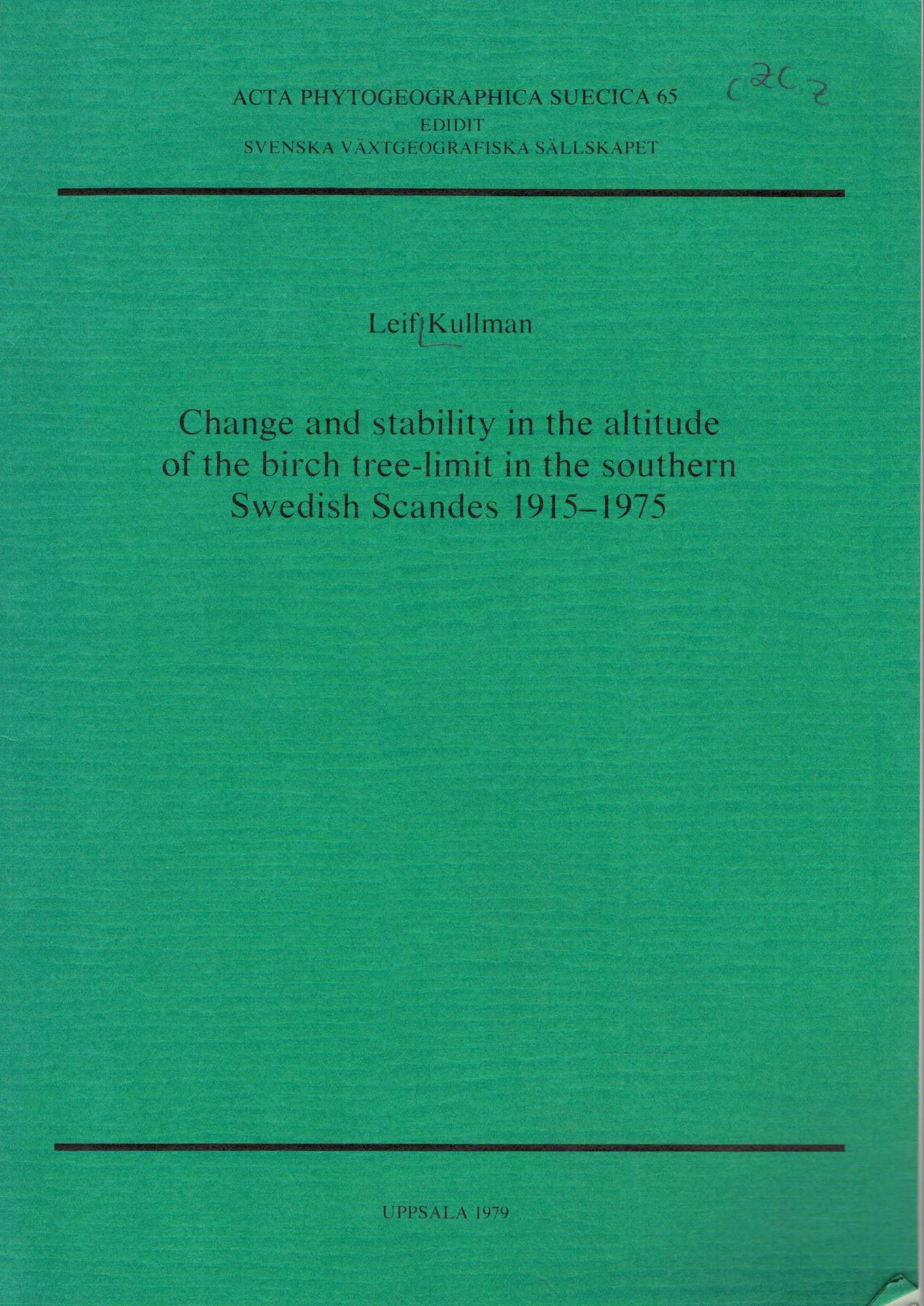 Change and stability in the altitude of the birch tree- limit in the southern Swedish Scandes 1915-1975. 1979. (Acta Phytogeographica Suecica, 65). 78 figs. 121 p. 4to. Paper bd.