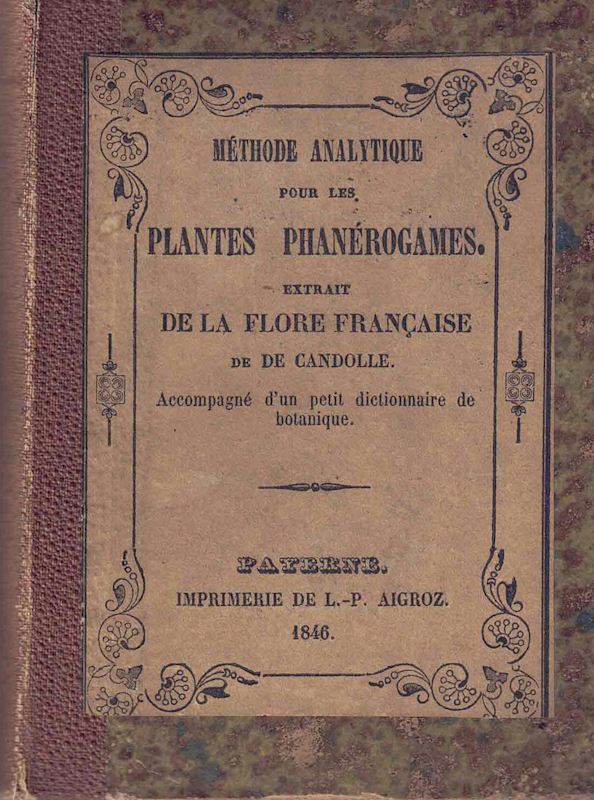 Méthode Analytique pour les Plantes Phanérogames. Extrait de la Flore Francaise de De Candolle. 1846. 501 & 23 p. 8vo. Hardcover.