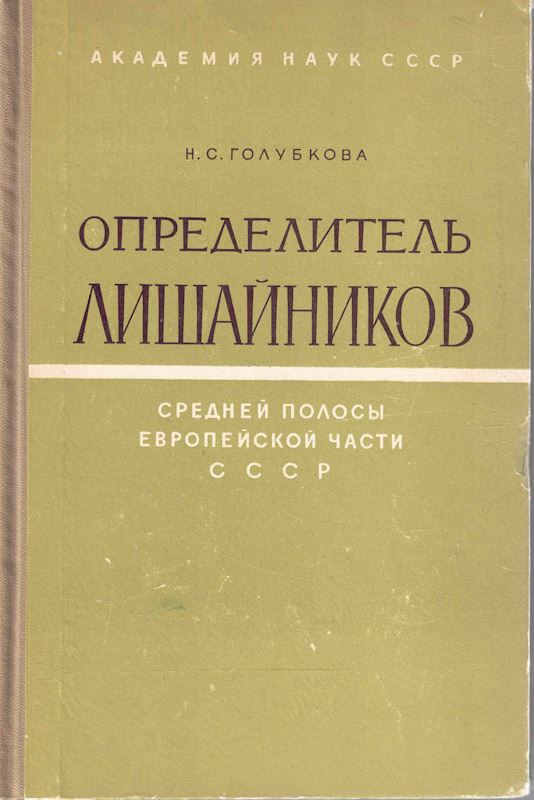 Golubkova, N. S.: Opredelitel' lishajnikov Srednei polosy evropeiskoi casti SSSR. 1966. 6 b/w plates. Many text figs. 255 p. gr8vo. Hardcover. - Russian, with Latin nomenclature and Latin species index. 41.73 (103098)