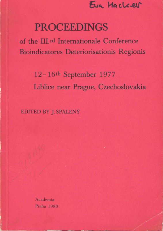 Proceedings of the 3rd International Conference Bioindicators Deteriorisationis Regionis, 12 - 16th Septmeber 1977. Liblice near Prague, Czechoslovakia. 1980. 410 p. gr8vo. Paper bd.