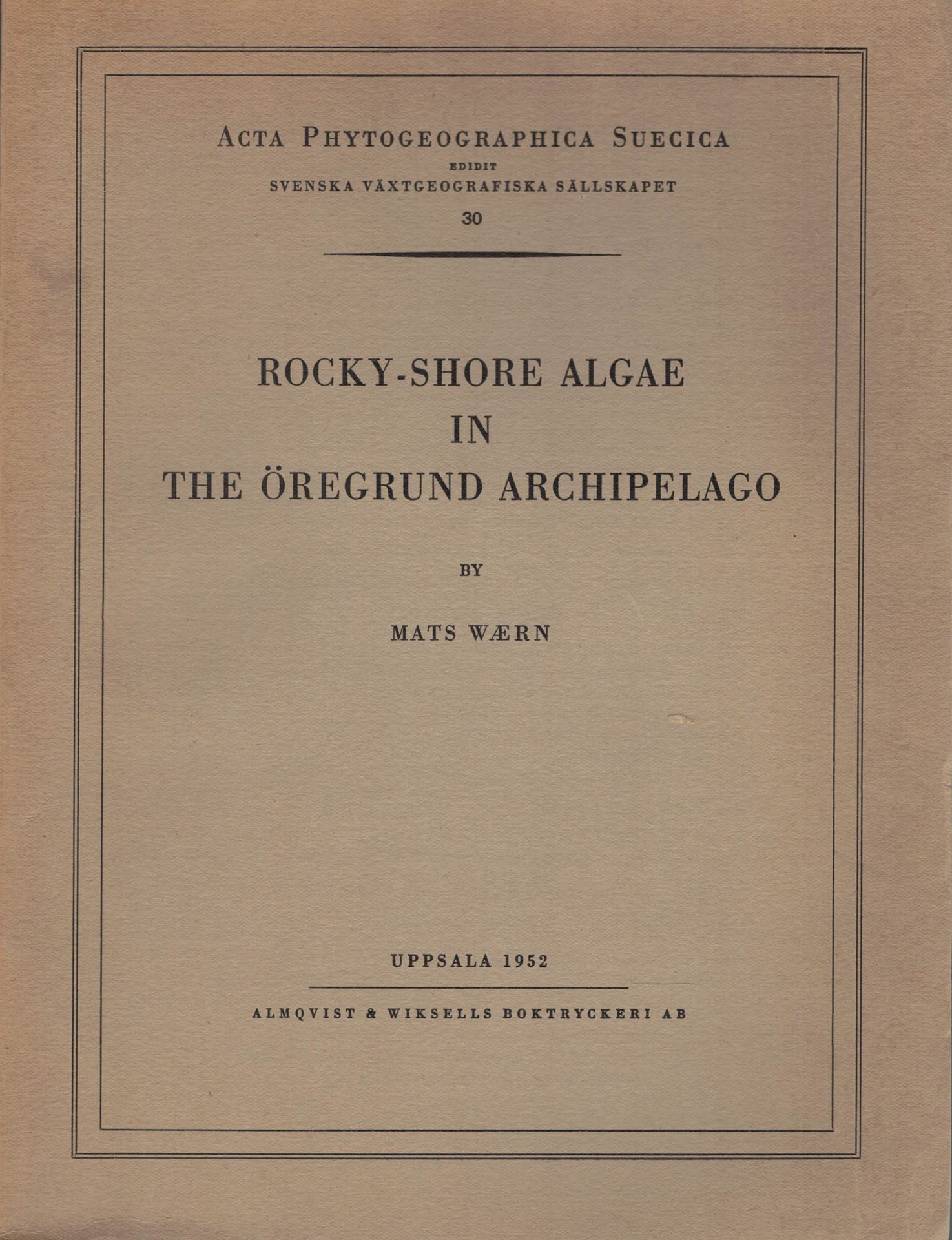 Rocky-shore algae in the Oeregrund Archipelago.1952. (Acta Phytogeogr. Suecica,30).106 figs.32 pls.298 p.
