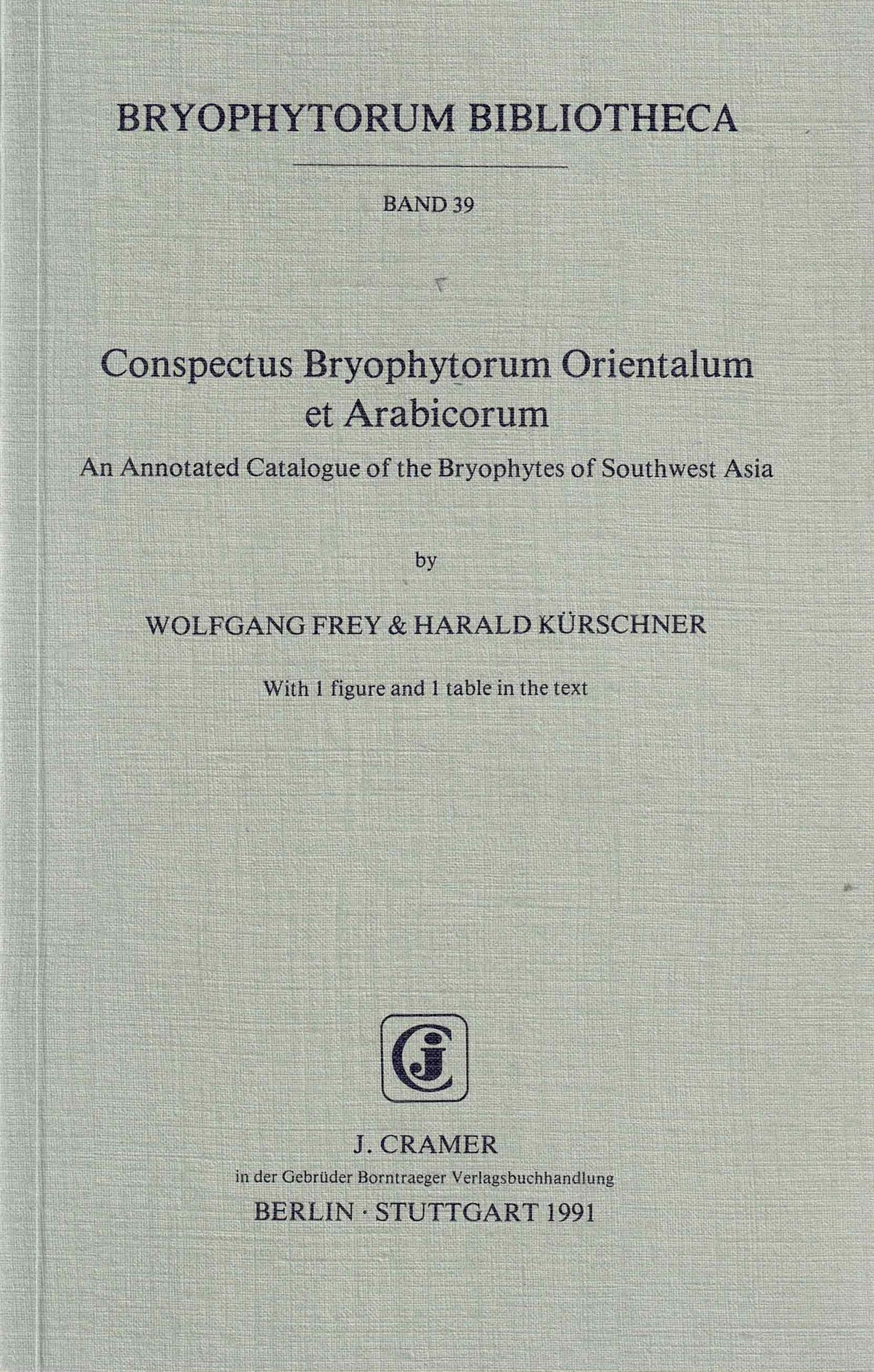 Volume 039: Frey, Wolfgang und Harald Kuerschner: Conspectus Bryophytorum Orientalium et Arabicorum. An annotated ca- talog of the bryophytes of Southwest Asia. 1991. 1 figure. 1 table. 184 p. gr8vo. Paper bd.