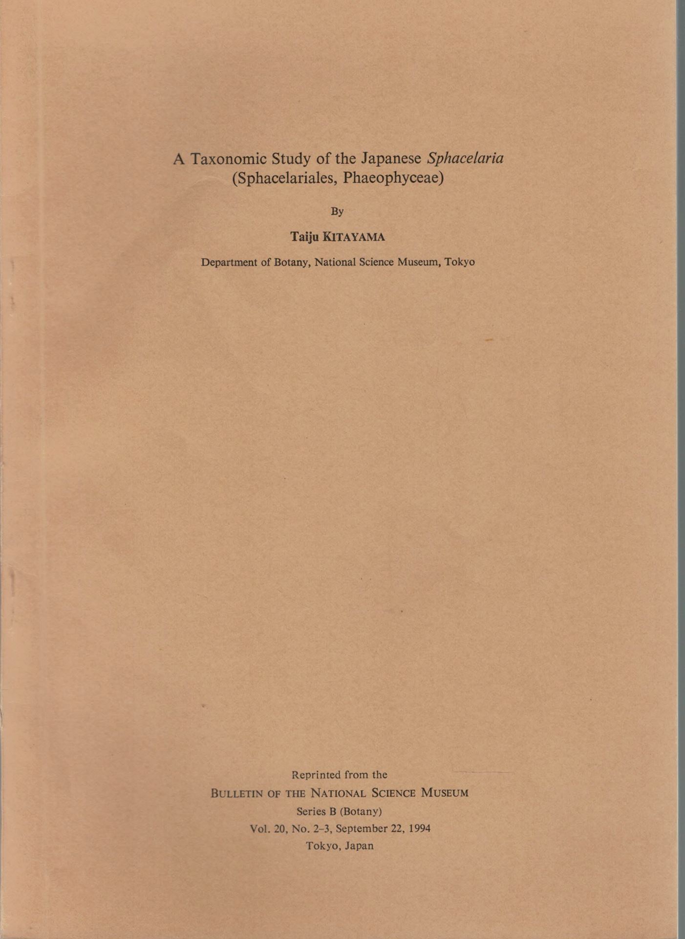 A taxonomic study of the Japanese (Sphacelarias (Sphacelariales, Phaeophyceae). 1994. (Bull. Nat. Science Mus., Series B (Botany). 20:3). 101 p. Paper bd.